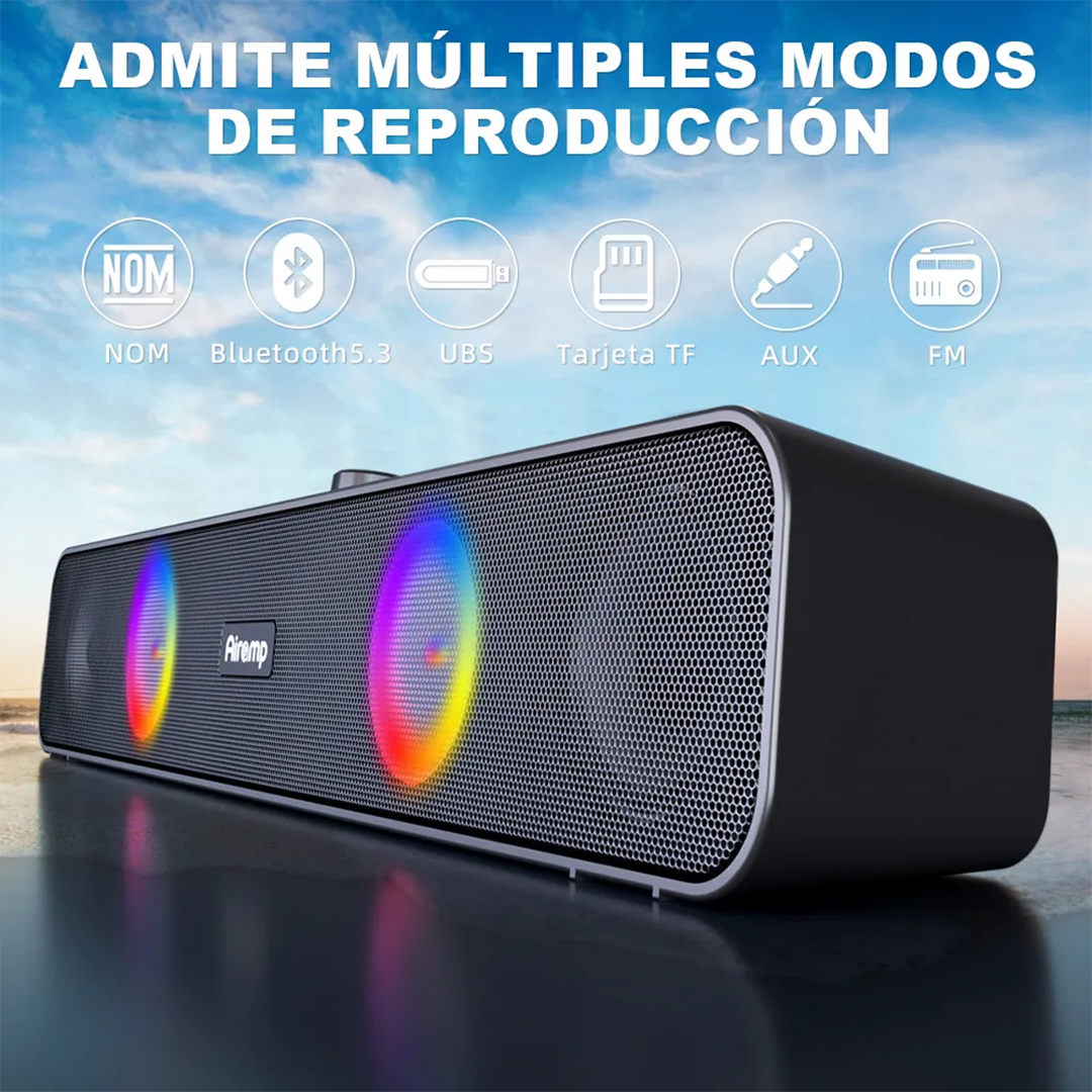 Este subwoofer bocina está diseñado como un altavoz LED portátil. Pequeño y portátil, se puede colocar fácilmente en su escritorio, ahorrando más espacio en el escritorio. Incluso se puede llevar a cualquier lugar, lo que lo hace perfecto para cualquier hogar, oficina, lugar de trabajo o viaje moderno.
