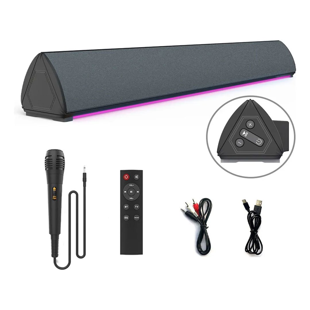 Disfruta un sonido envolvente y potente con esta barra de sonido de nueva generación con subwoofer y 4 altavoces. Ofrece conexión Bluetooth 5.0, AUX, micrófono para karaoke, radio FM y diseño compacto ideal para cualquier espacio. Perfecta para cine en casa, música o entretenimiento en exteriores. ¡Calidad, versatilidad y estilo en un solo equipo!