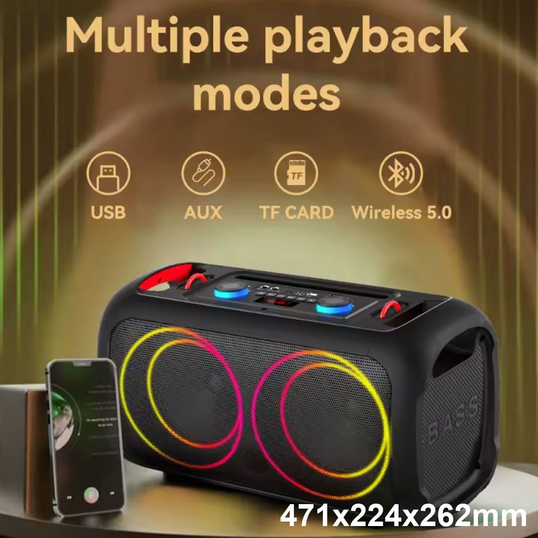 Ofrece una potencia de salida real de entre 30 y 50 W RMS con picos PMPO de hasta 300 W. Integrado con un woofer full-range de 6.5″, consigue graves profundos y voces bien definidas, ideal para karaoke, reuniones al aire libre y eventos sociales.