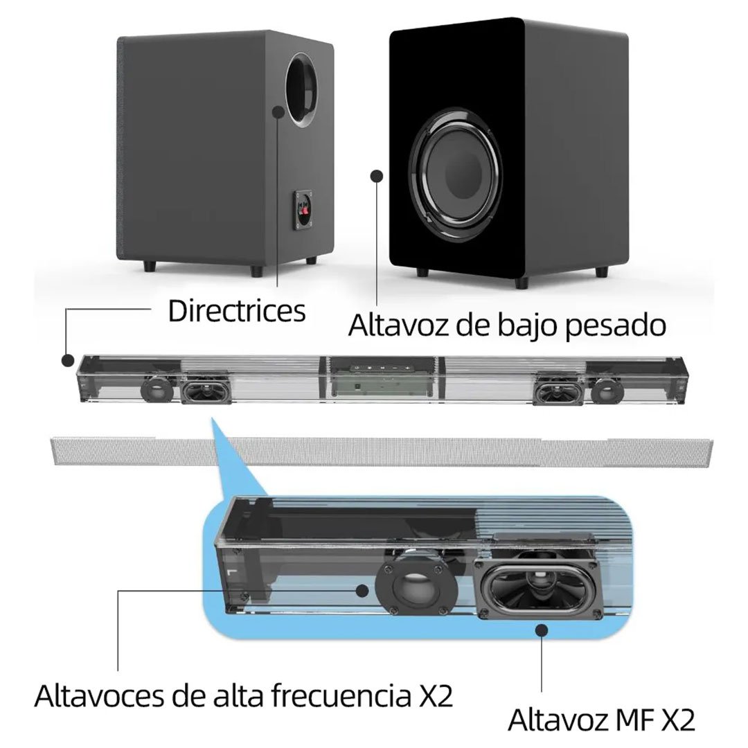 Barras de sonido ofrece un sonido superior, bocinas para tv hace que sea fácil cambiar el sonido de su televisor y su experiencia de cine. Maximiza la claridad del sonido, reduce el retardo de la voz y lleva a tus oídos una nueva experiencia de audio dinámico.